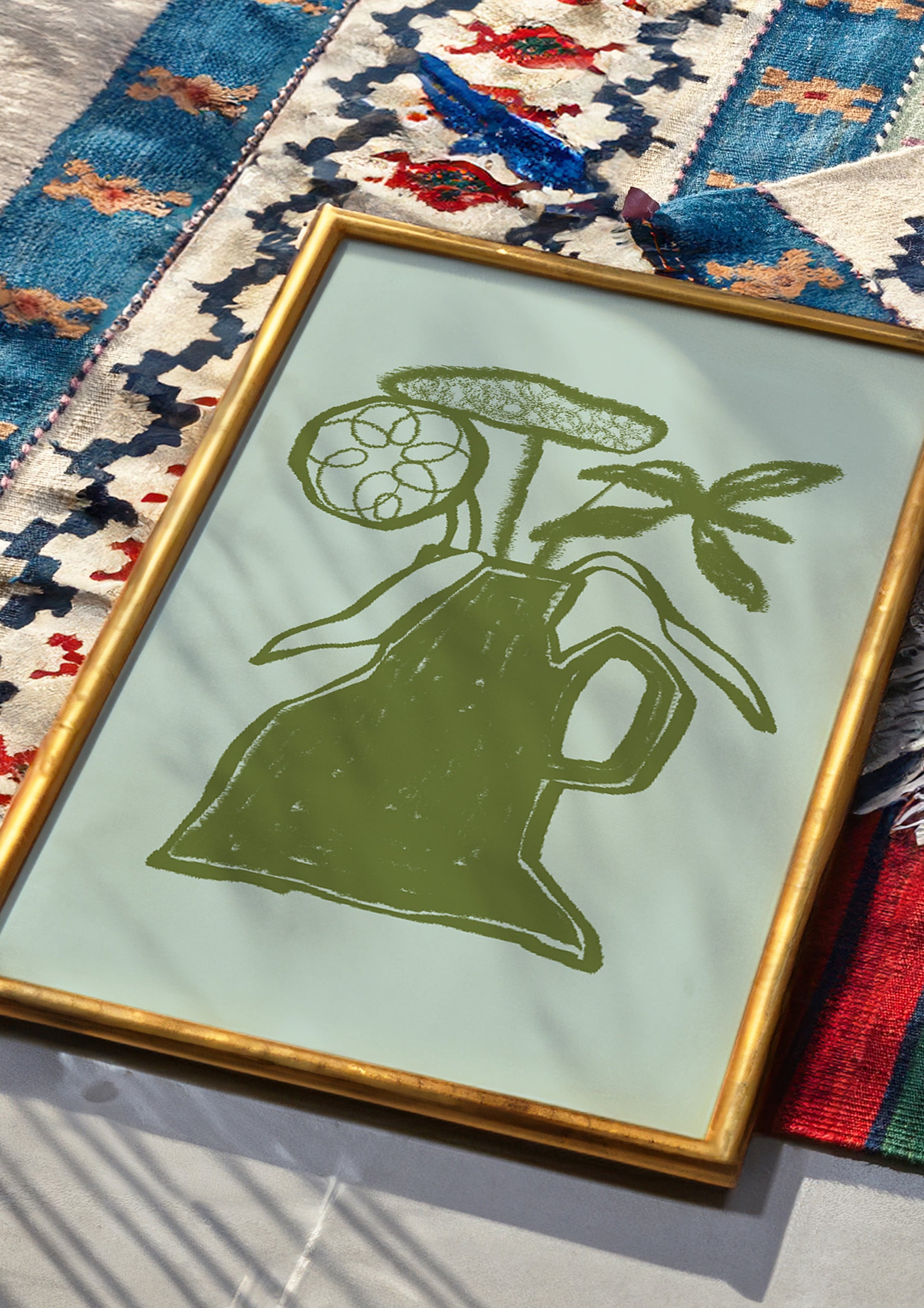 Add a refreshing touch to your home with the Abstract Green Vase With Flowers wall art print. Featuring a vibrant green vase and a contemporary floral design, this artwork brings life and energy to any space. Its modern style makes it a versatile addition to both minimalist and eclectic interiors.