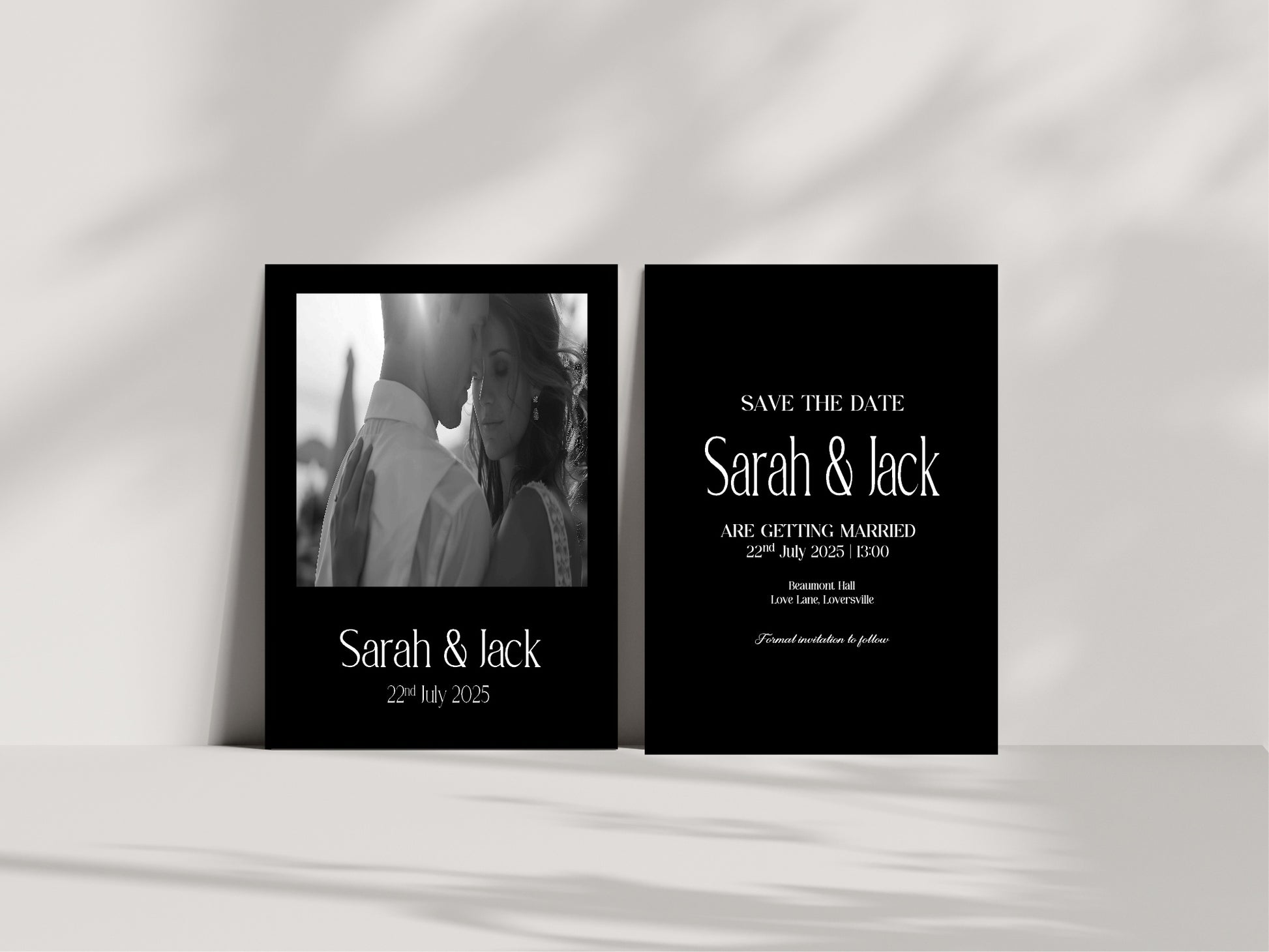 Black Photo Save The Date Wedding Party Cards & Envelopes | Pack of 10 Double Sided
