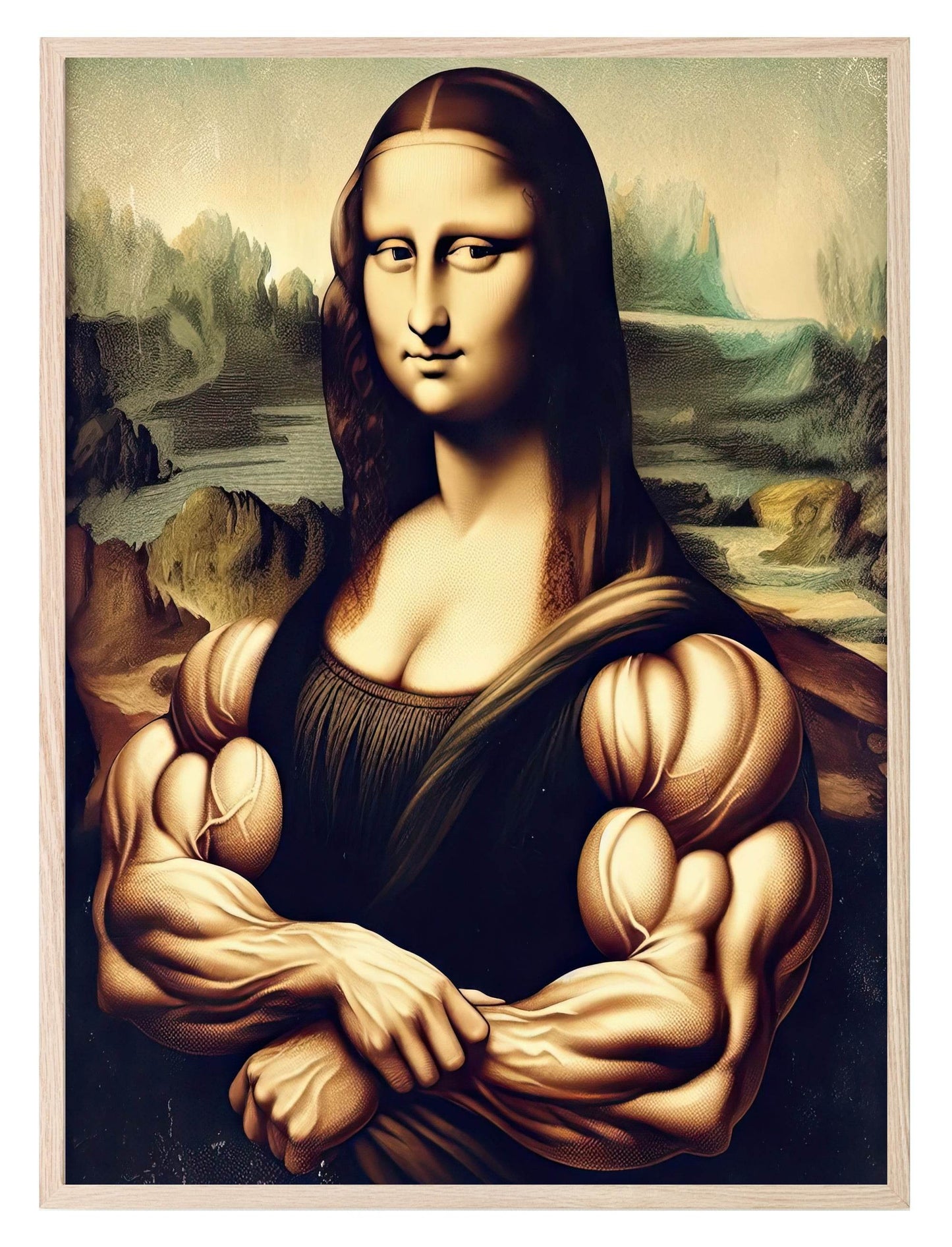 Bring some laughter and creativity into your space with the Mona Lisa With Muscles Print | Funny Wall Art, a bold and entertaining artwork that gives a whole new meaning to strength in art.