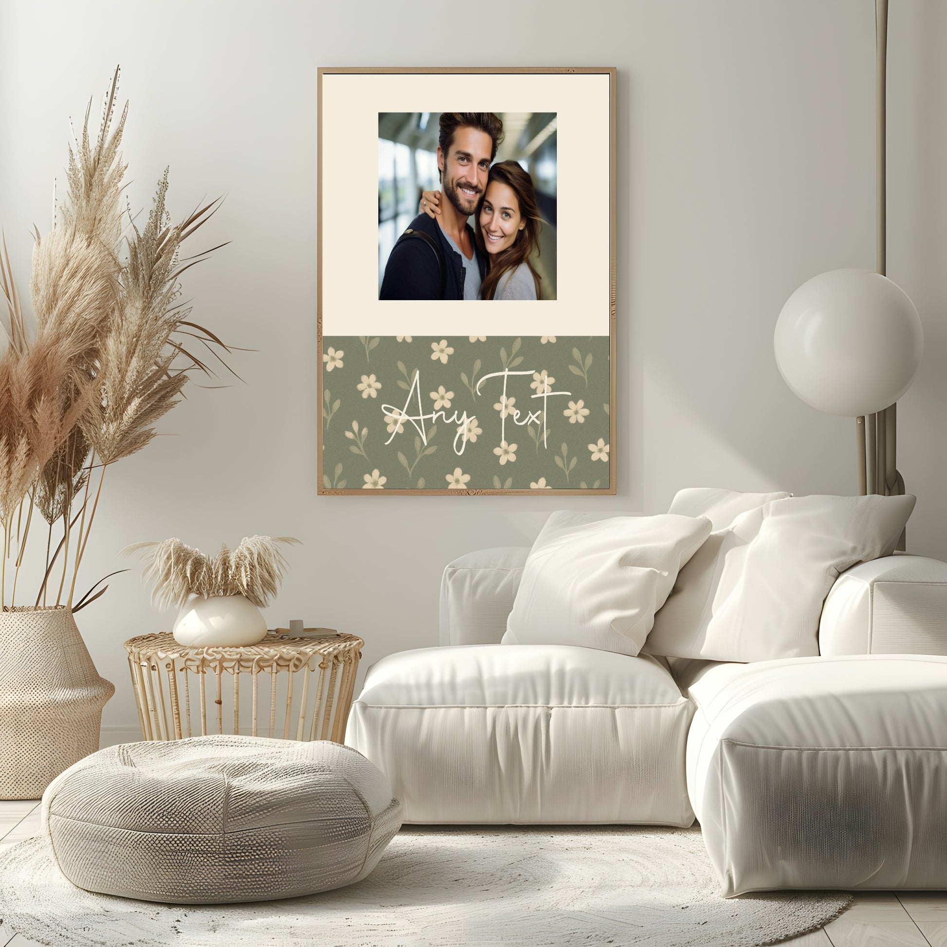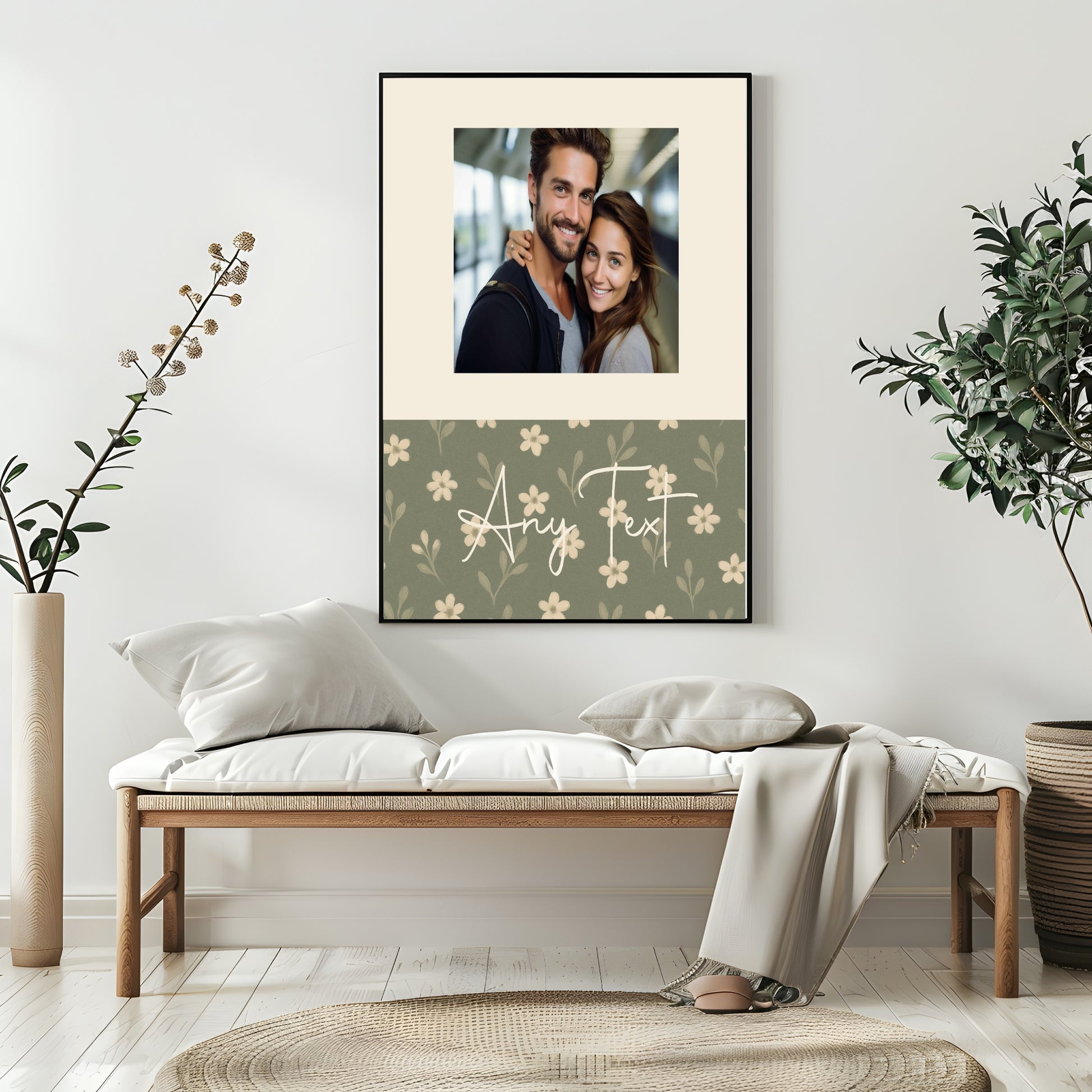 Bring a touch of nature-inspired elegance to your space with this personalised floral photo print, designed in a striking rust and forest green palette. The rich earthy tones and delicate floral accents create a timeless yet contemporary design that adds warmth and character to any room. Printed on premium quality paper and available in A5, A4 and A3 sizes, this artwork is made to fit standard frames for easy styling. Add your own personalisation – whether it’s a name, date or special message – to make this print a meaningful keepsake or a thoughtful gift.