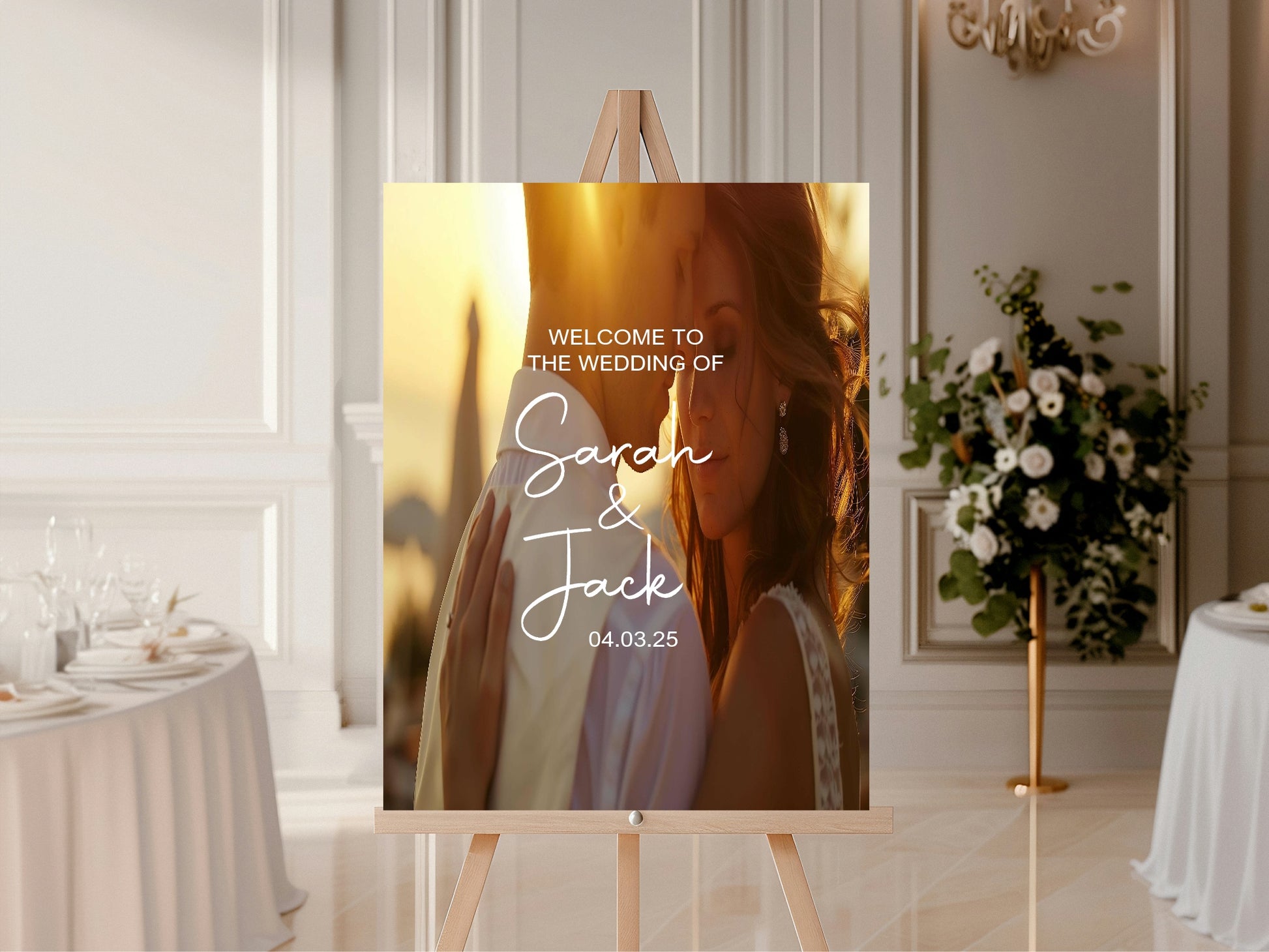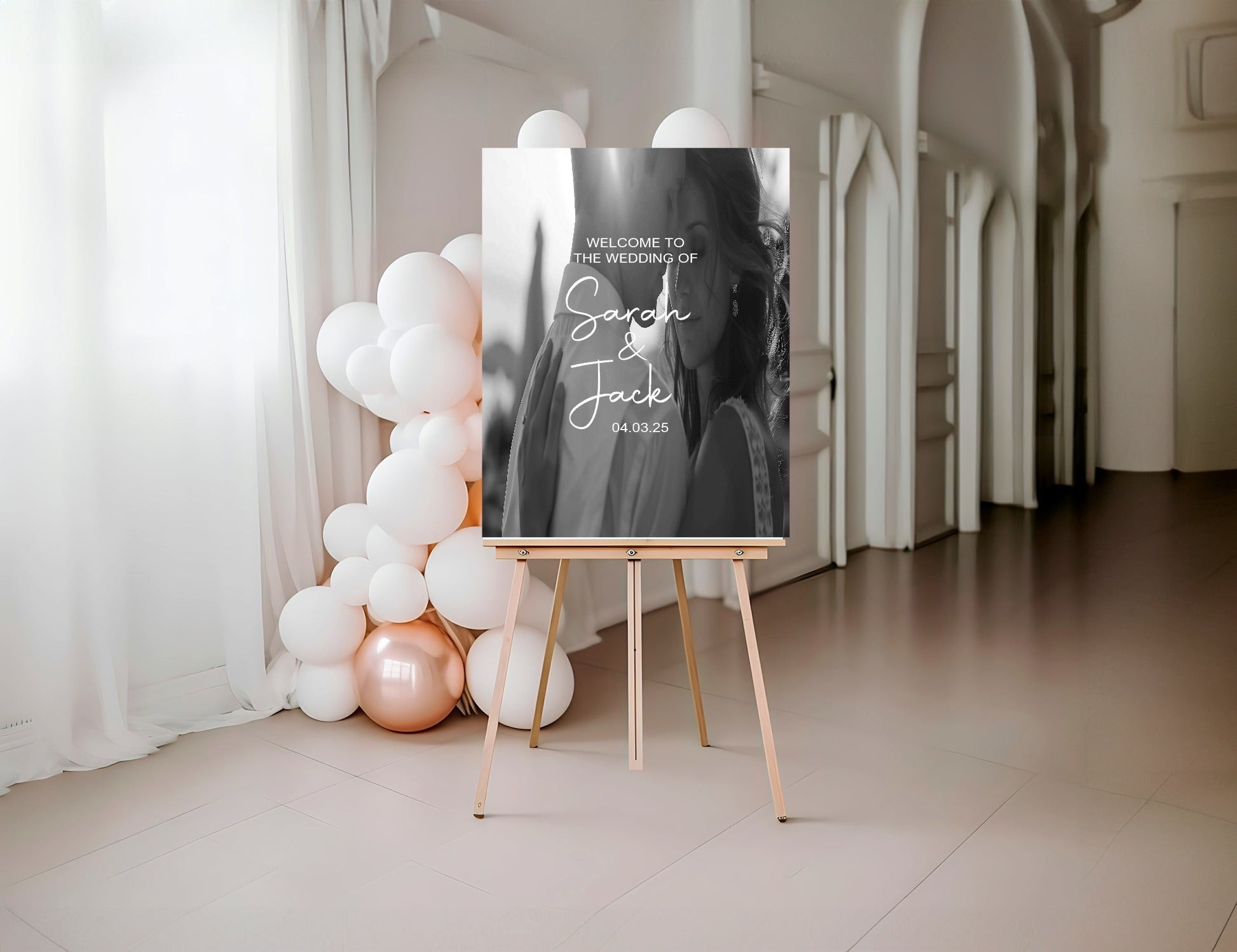 Welcome your guests in style with our Photo Wedding Welcome Sign, featuring your chosen photograph paired with beautifully minimalist typography. Designed to complement any wedding theme, this personalised sign adds a heartfelt and contemporary touch to your ceremony or reception — the perfect introduction to your celebration.