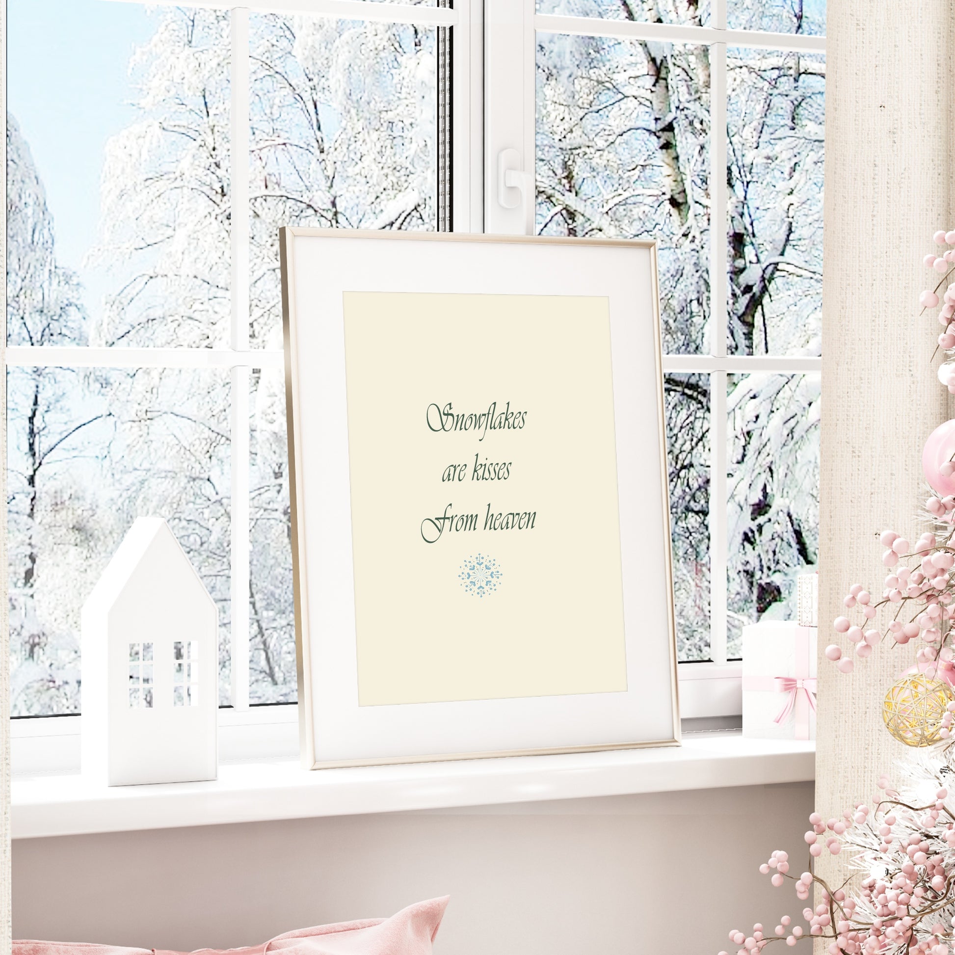 Bring a touch of winter magic to your home with the Snowflakes Are Kisses From Heaven Print, featuring a heart-warming quote set against a soft beige backgrounds. Perfect for living rooms, bedrooms, or gallery walls, this print adds charm and seasonal inspiration to any space.