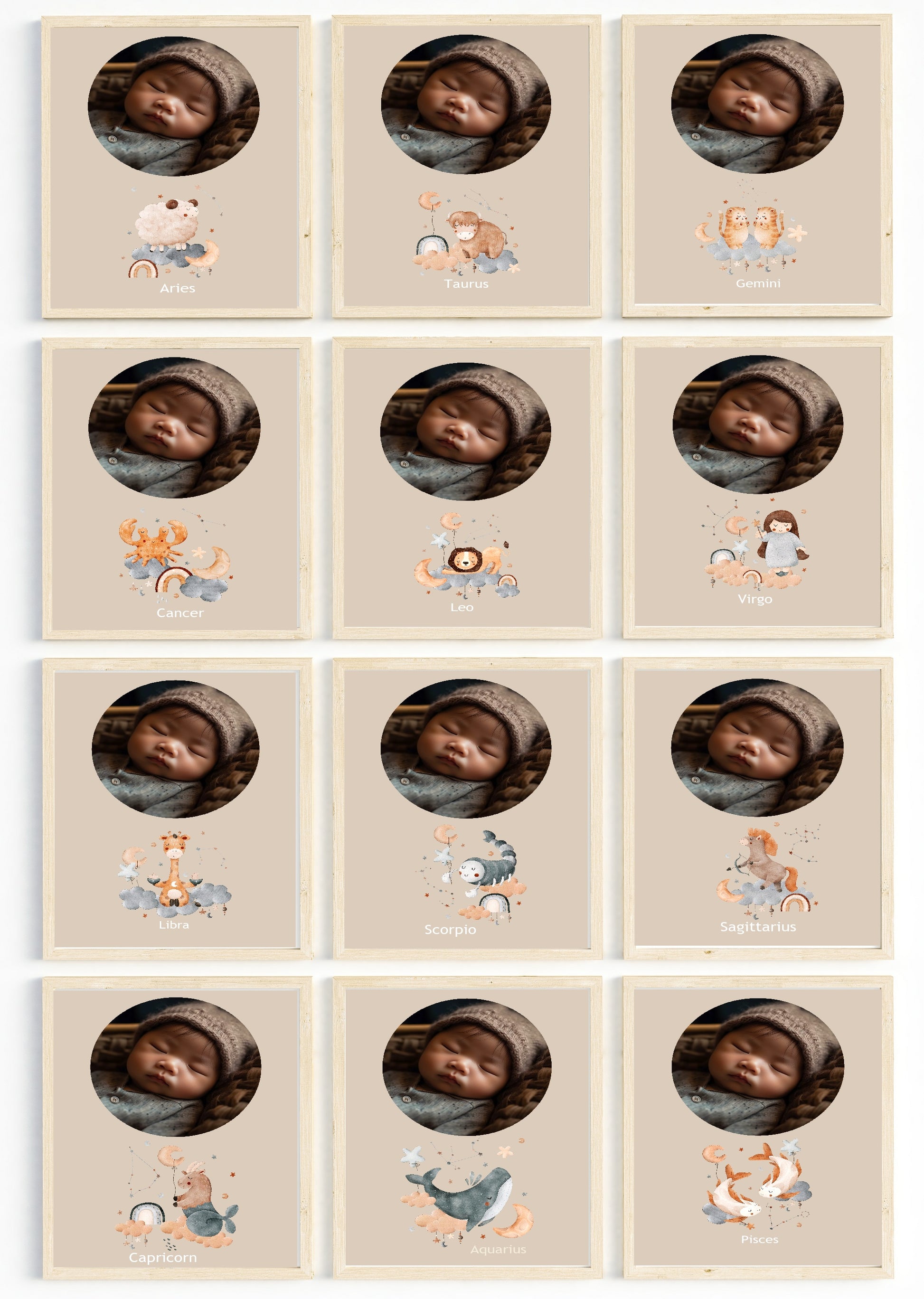 Printed on premium 300gsm card, it features soft tones and a playful yet modern design that suits any décor style. Simply choose your child’s star sign and upload your favourite photo to create a meaningful keepsake that captures their unique spirit.
