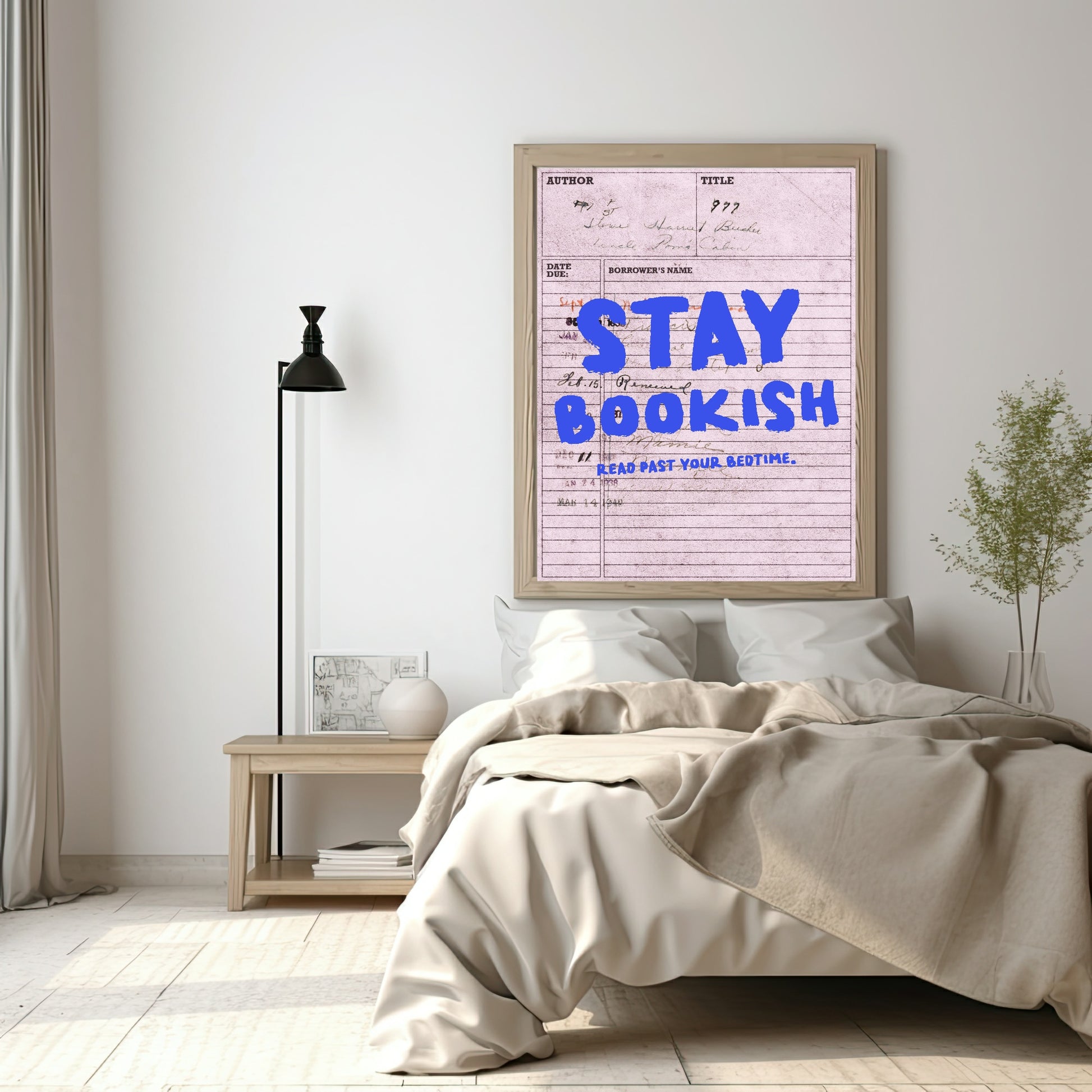Add a touch of charm to your walls with the Stay Bookish Read Past Your Bedtime Print. Featuring clean, modern typography, this design is perfect for book lovers who know the joy of reading late into the night. A playful and stylish wall art piece for bedrooms, offices, or cosy reading corners.