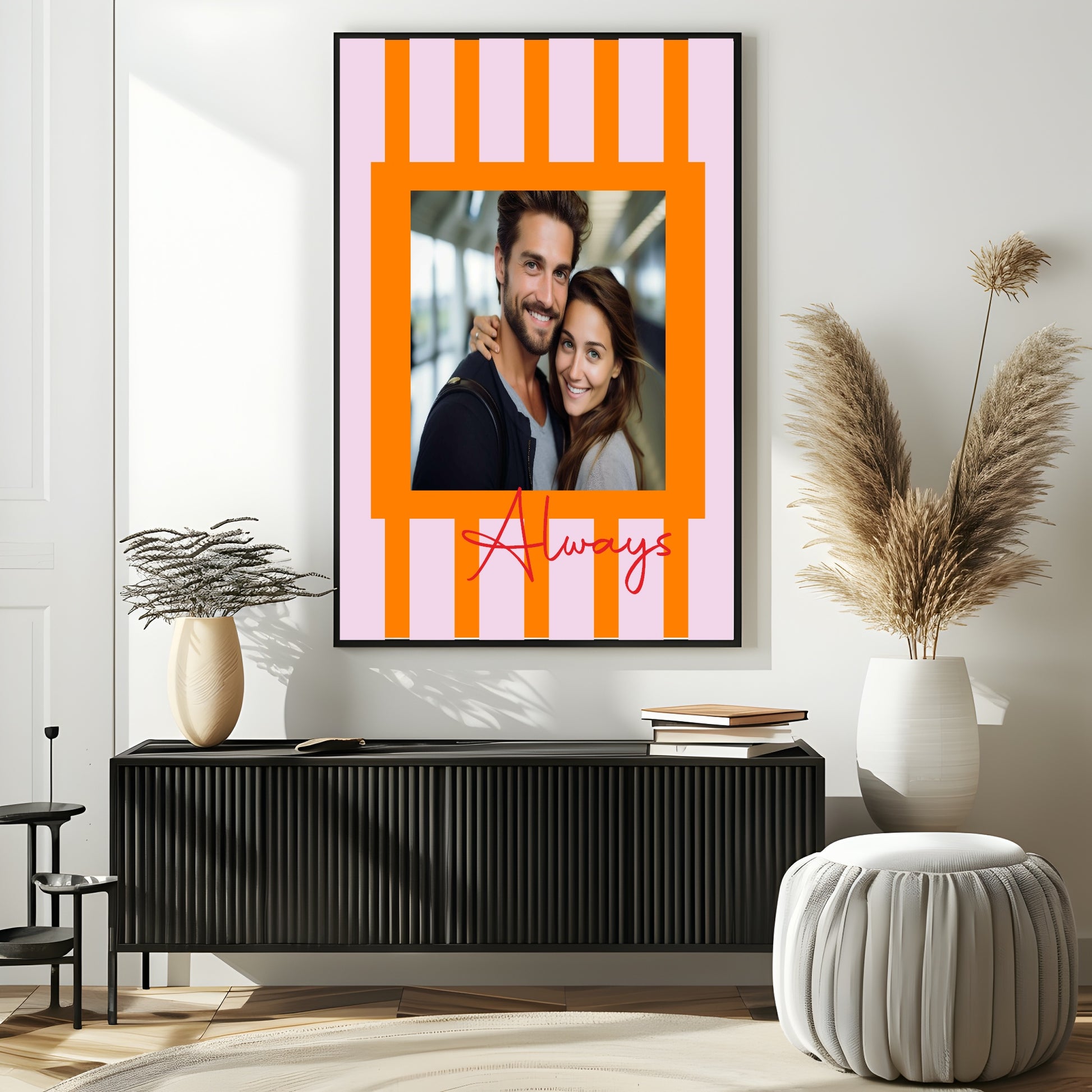 Add a splash of fun and flair to your walls with this striped photo print, bursting with vibrant colour combos like black & white, green & cream, blue & pink, and orange & pink. Its sleek stripes offer a fresh, modern vibe that’s perfect solo or mixed with your favourite prints. Printed on top-quality paper and available in A5, A4, and A3, it fits standard frames with ease—making your decorating effortless and stylish!