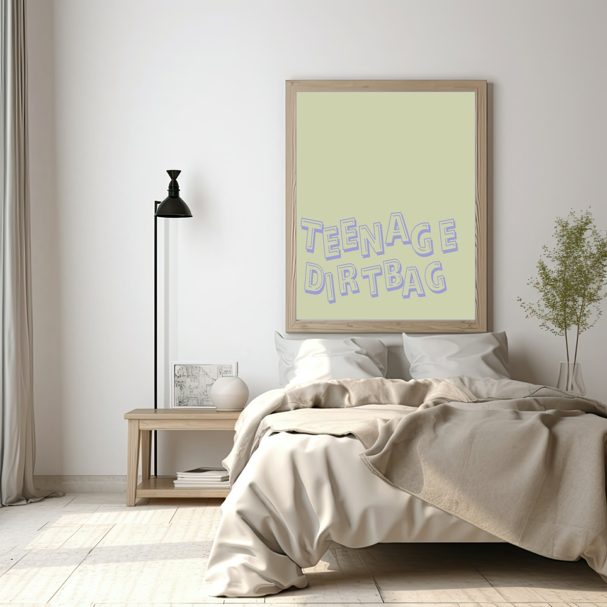 Bring a playful hit of early-2000s nostalgia to your space with this Teenage Dirtbag print. Inspired by iconic pop-punk lyrics and youthful rebellion, this fun wall art adds personality and attitude to bedrooms, studios, home offices or music-loving corners of your home. The bold design makes it a standout piece that sparks conversation while still feeling effortlessly cool and stylish.