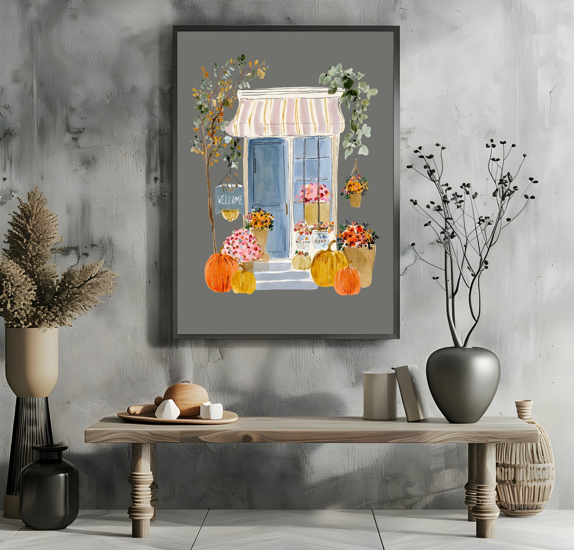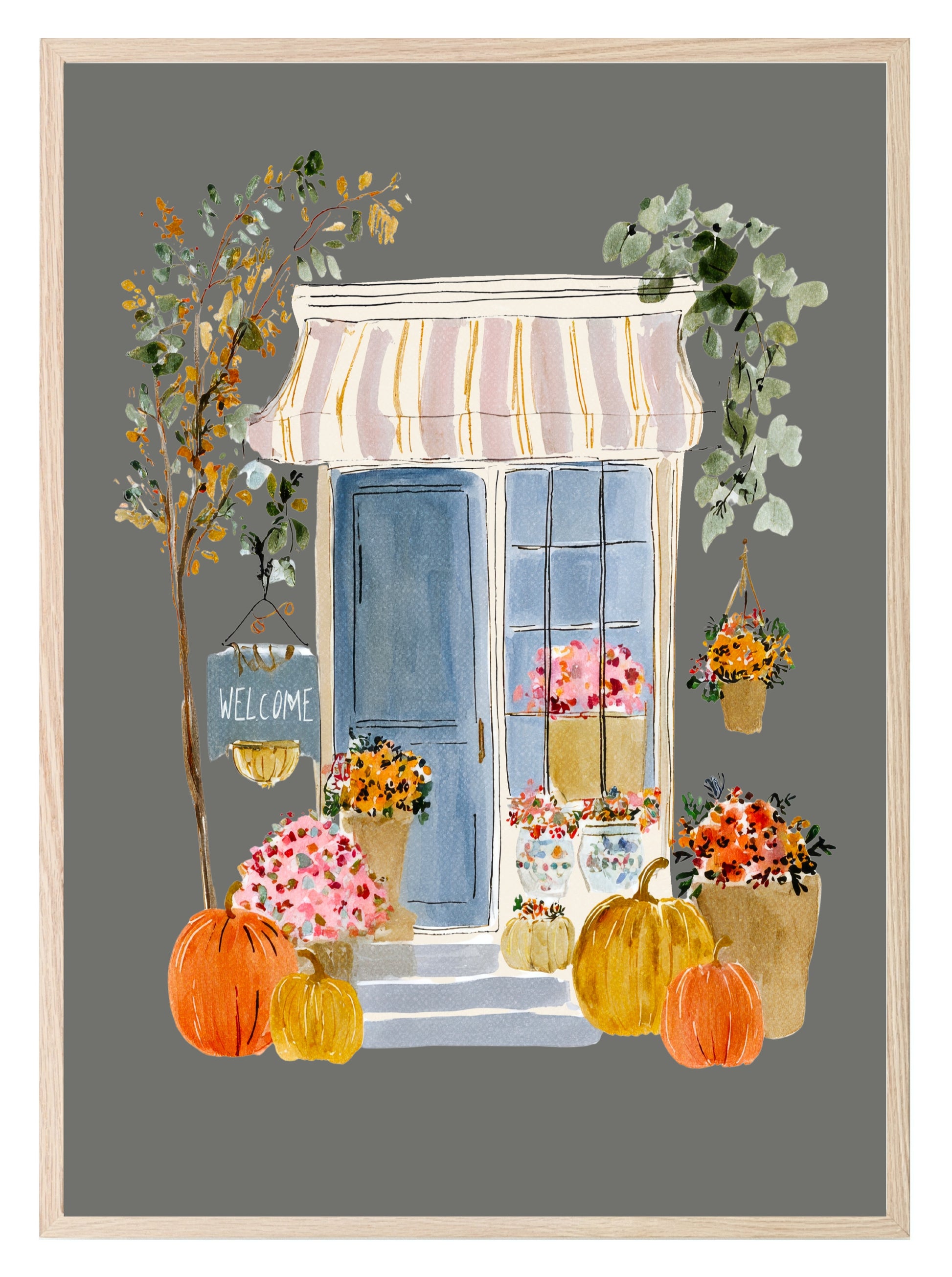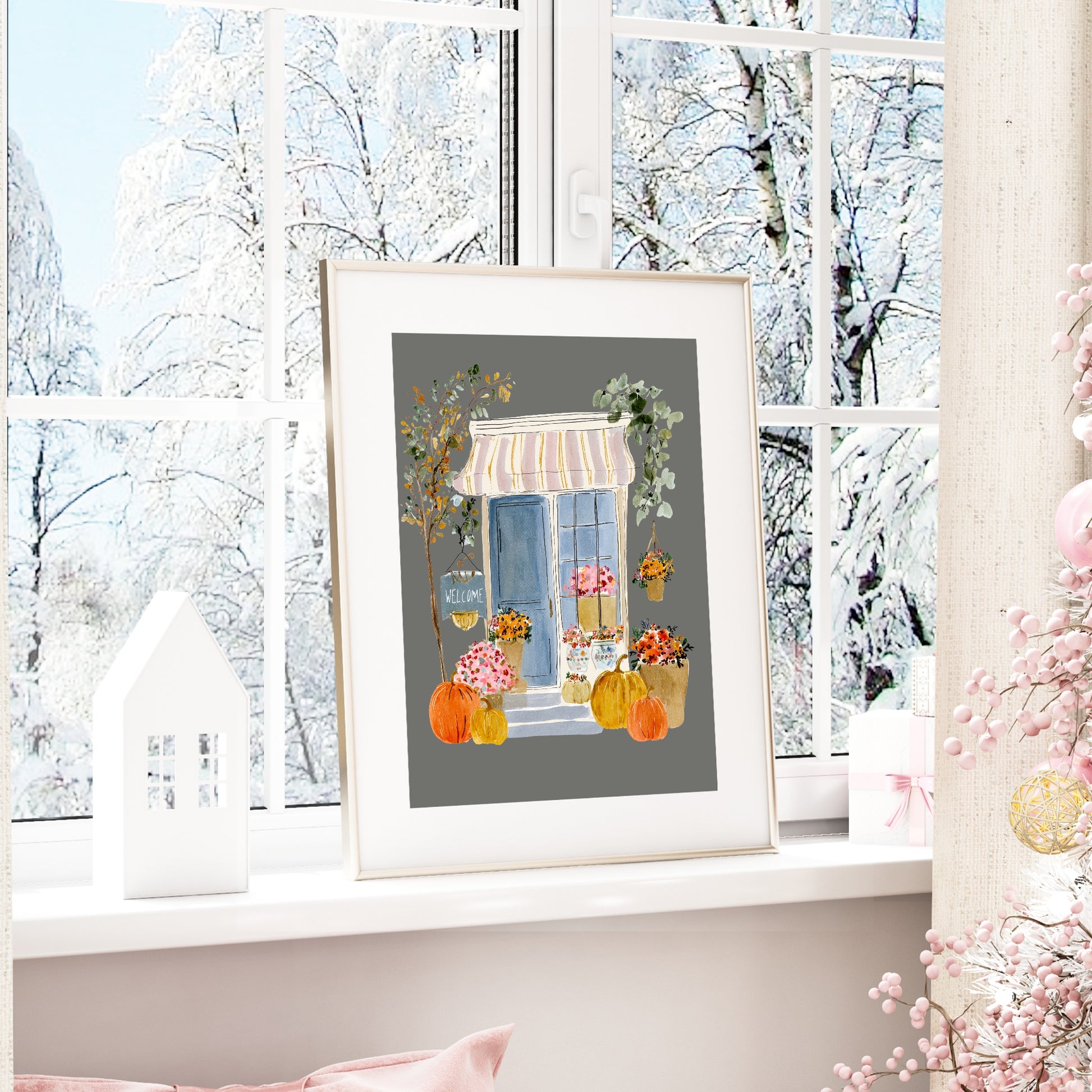 Elevate your seasonal décor with the Winter Shop Print, featuring a shop set on a soft grey background. A chic and modern design that adds sophistication and warmth to bedrooms, living rooms, or gallery walls.