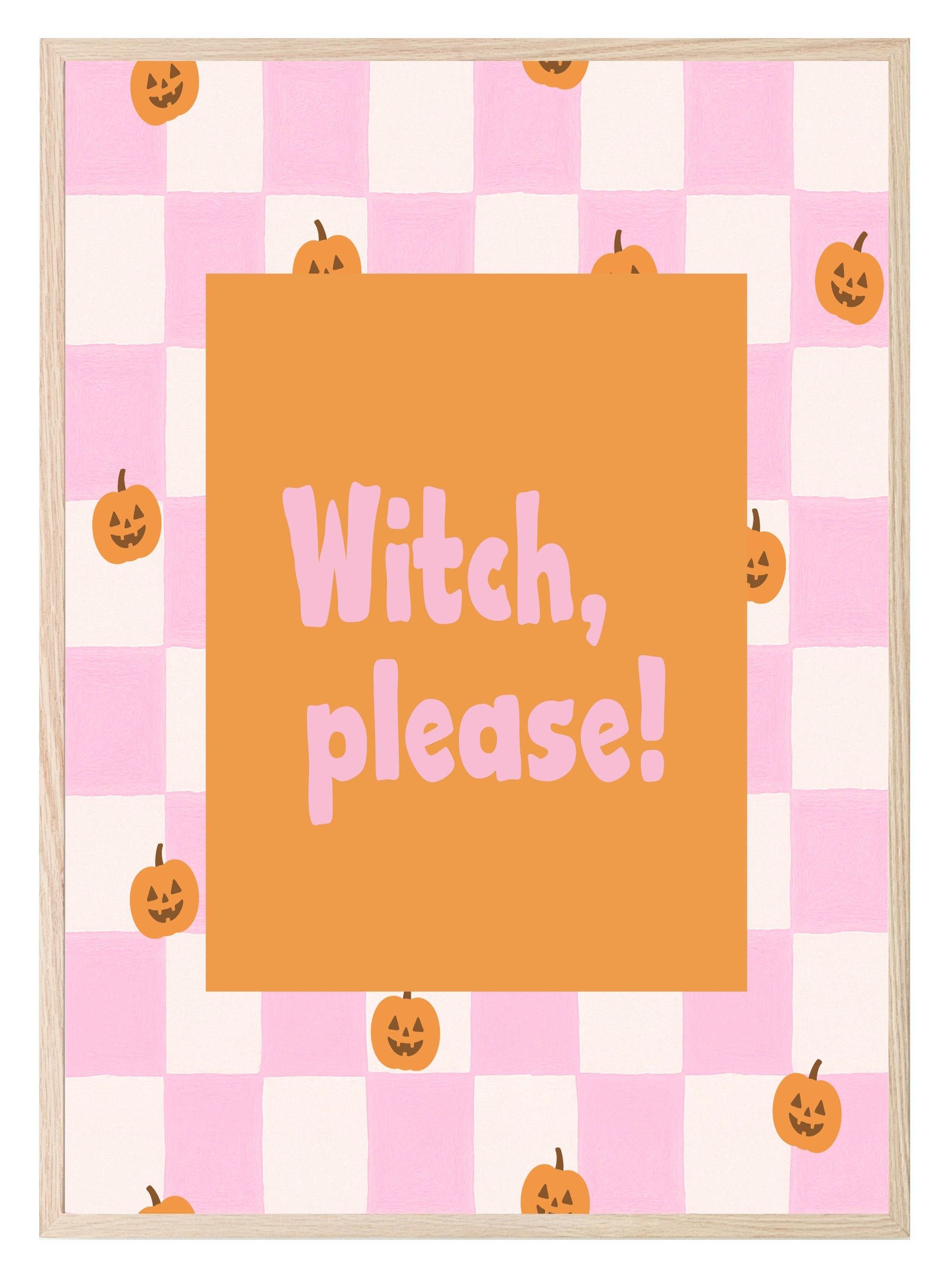 Witch, Please Print | Halloween Wall Art | Pumpkin Pattern | Pink & White Checkered